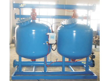 當系統處于反洗狀態時,過濾仍然繼續,其中要進行反洗的標準單元砂缸不進行過濾,系統中其它標準單元砂仍然在過濾。過濾后的清潔水部分用來反洗標準單元砂缸,其余仍送到用戶處。反沖洗污水則通過水力閥的反洗排水口被排出。在高速砂缸全自動過濾系統中,特殊的集水器設計可使填料之間填料相互搓洗,大限度地提高反沖洗效率,減少所需的反洗水(清潔水),同時反洗時沒有跑料現象。一個標準單元砂缸反洗為2分鐘,反清洗結束,標準單元砂缸內部壓頭損失減小到合理范圍,定壓裝置給出復原信號,水力閥恢復到過濾狀態,下一個標準單元砂缸則準備進入反洗狀態。